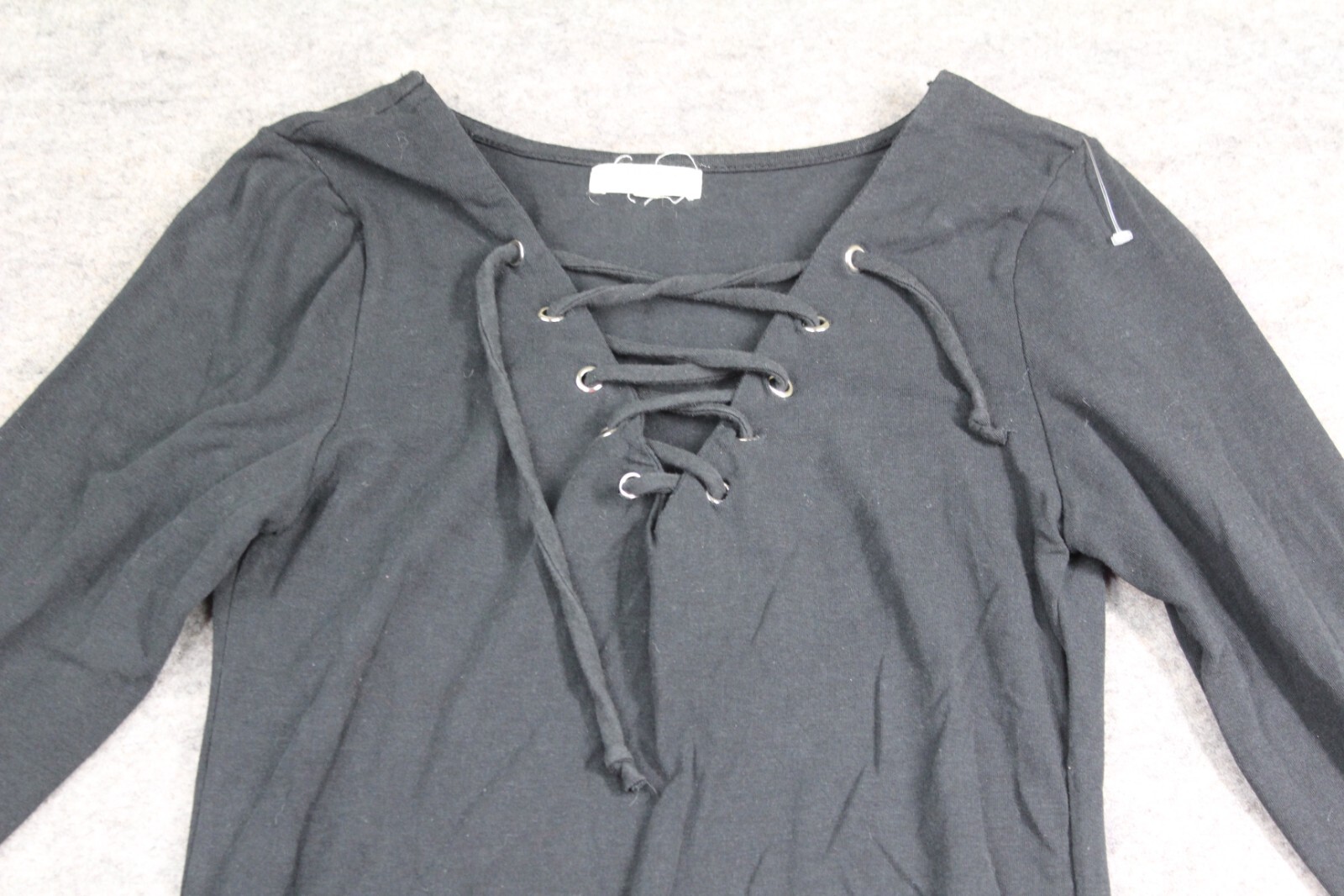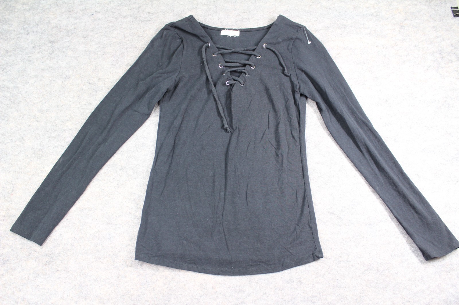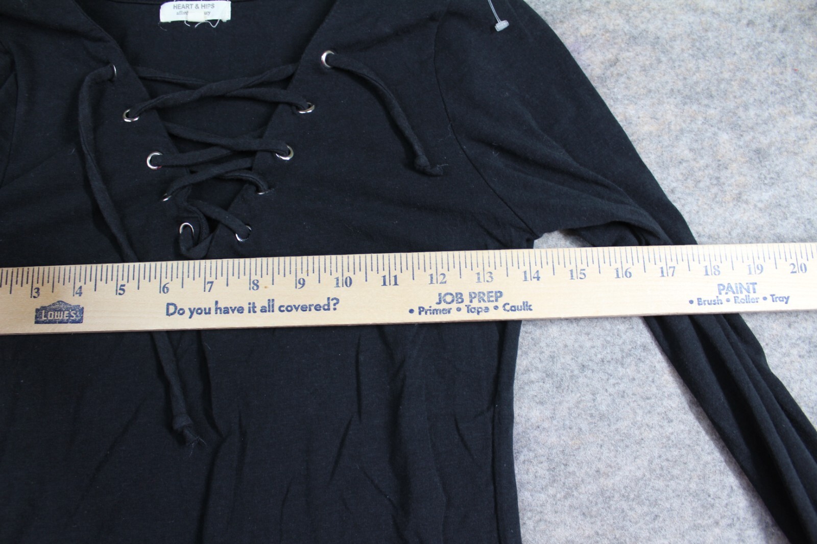 Heart And Hips Shirt Size Medium M Lace Up Long Sleeve Stretch Black Specs