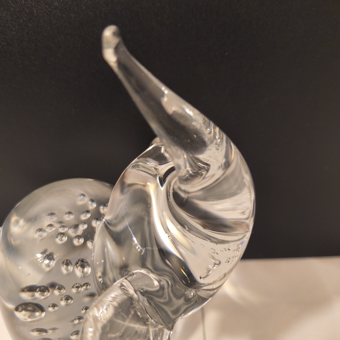 Elephant Trunk Up Blown Glass Bullicante Bubbles Crystal Clear 4.5" Paperweight Specs