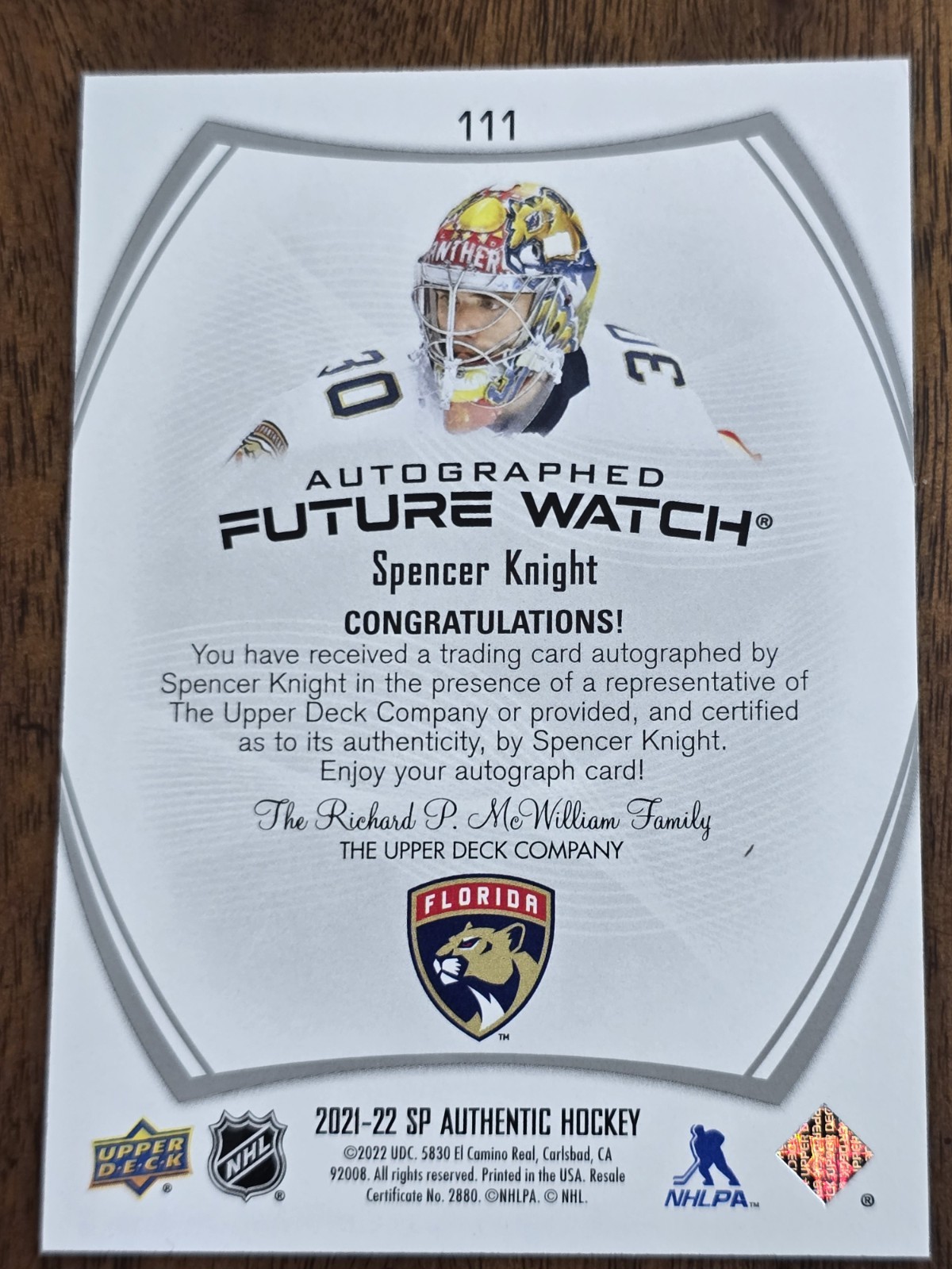 2021-22 SP Authentic Spencer Knight Auto RC Future Watch # 969/999 Specs