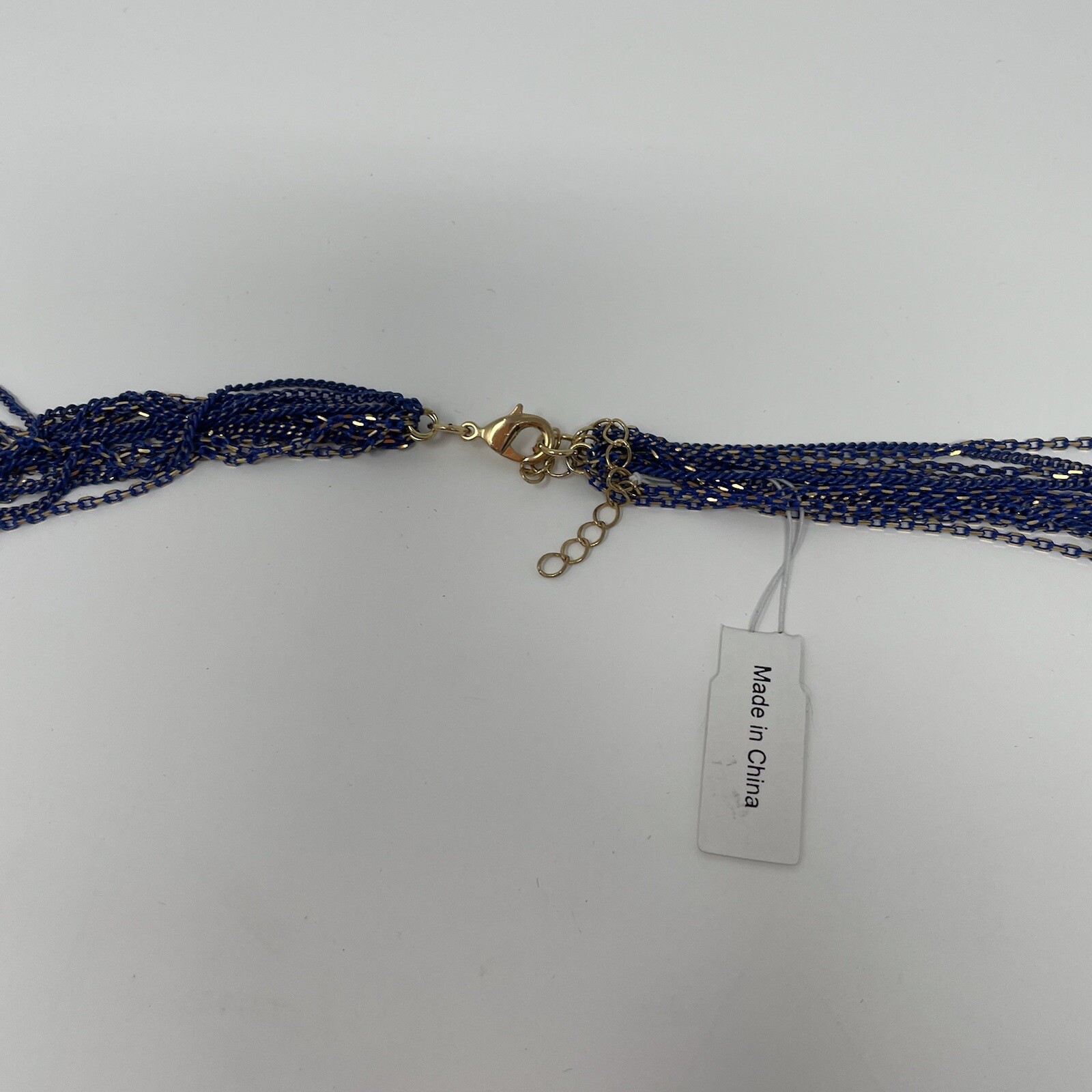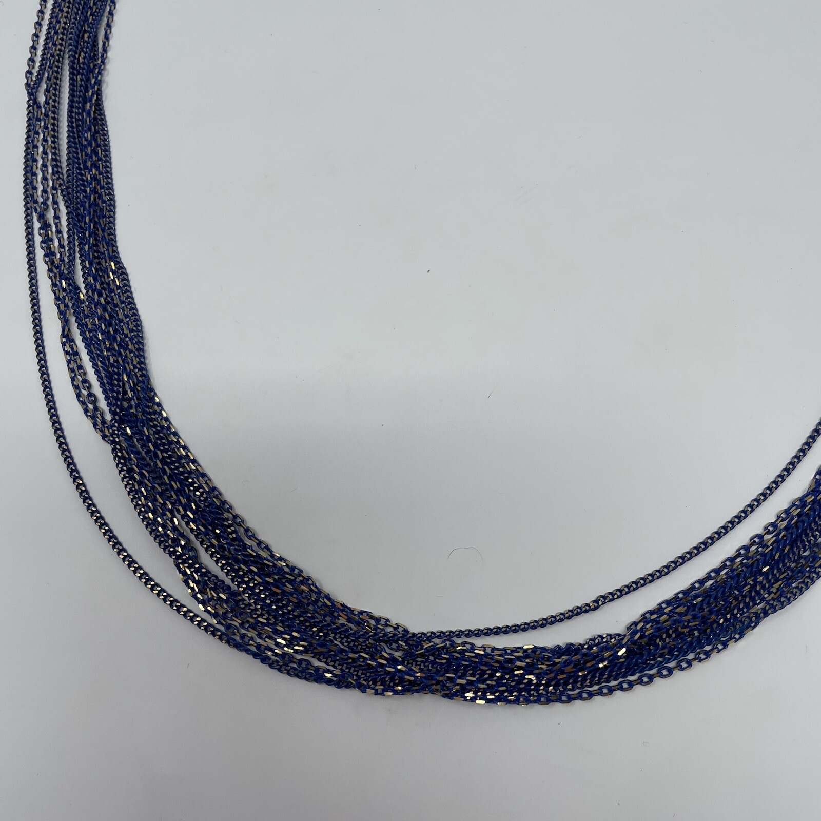 QVC Susan Graver Liquid Multi Strand Chain Royal Blue Sparkle Goldtone Necklace.