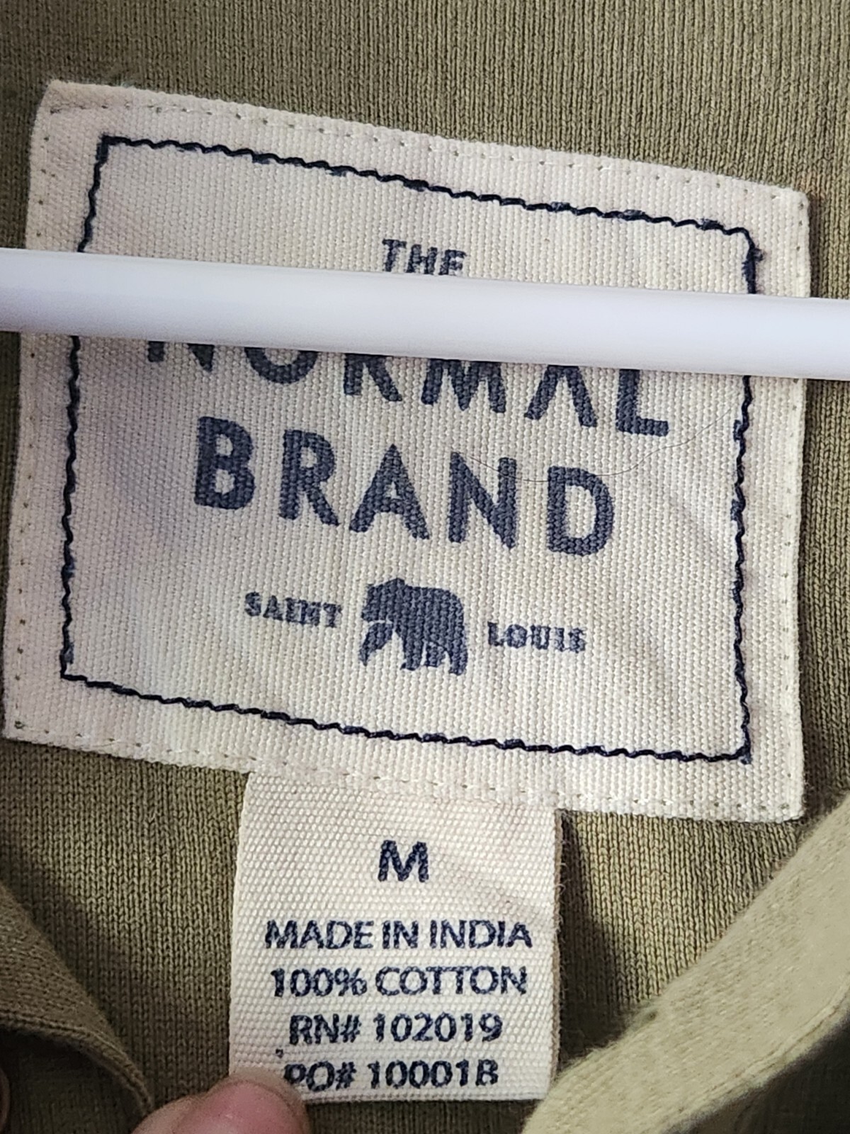 The Normal Brand Long Sleeve Polo Shirt Medium Men's Olive Green Cotton