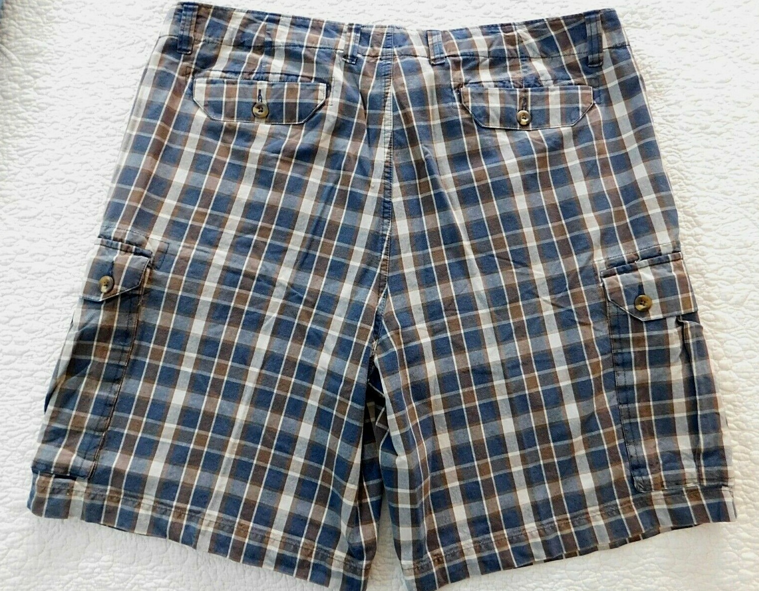 EUC Club Room Mens 40 Brown/Blue/White Plaid Cargo Shorts C4018