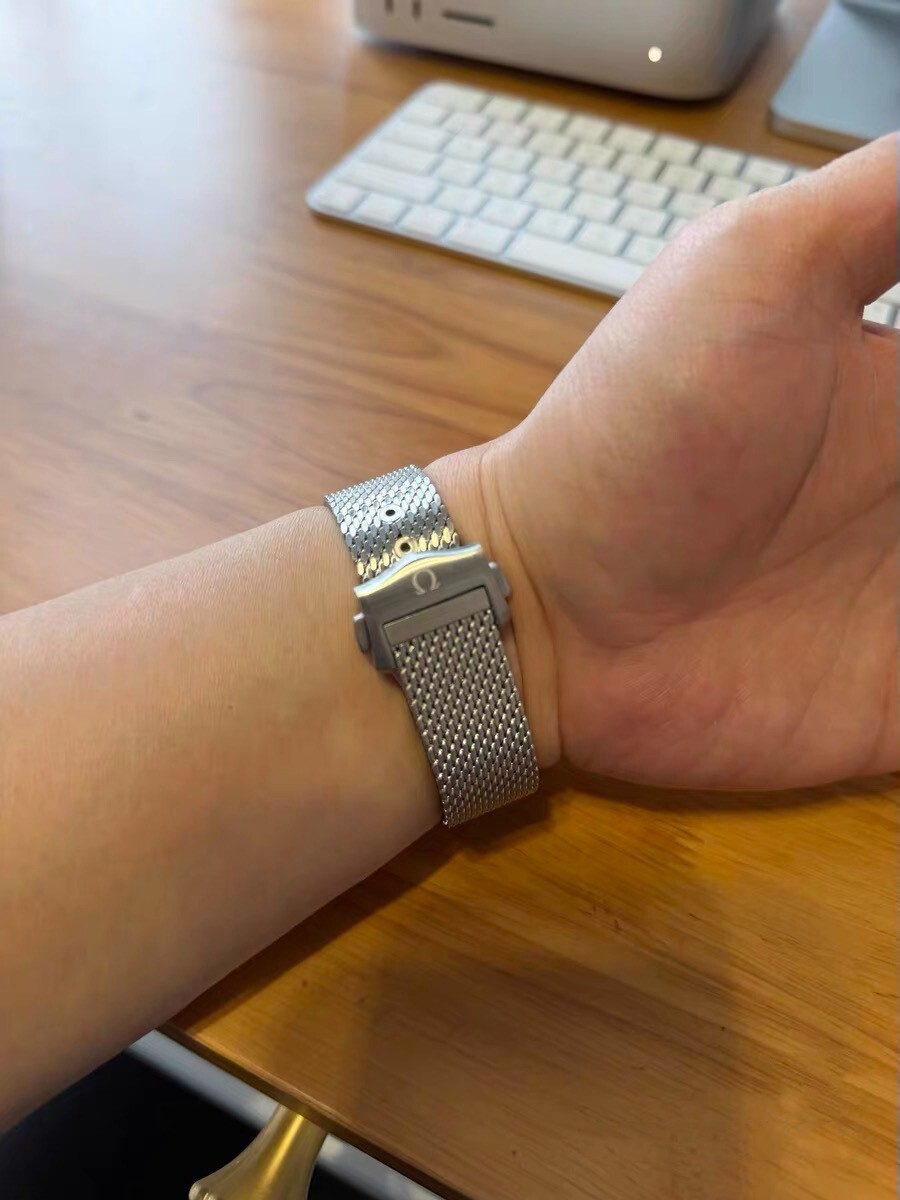 This 20mm braided solid stainless steel strap is designed for Omega Seamaster watches and includes 4 spring bars for installation. Condition is new with tags. It can be a practical replacement or spare band if your current strap is worn or you want a different look while keeping a stainless steel style. Free shipping is included with this item. Check the listing for details on compatibility with specific Seamaster references, clasp type, and sizing before purchasing.