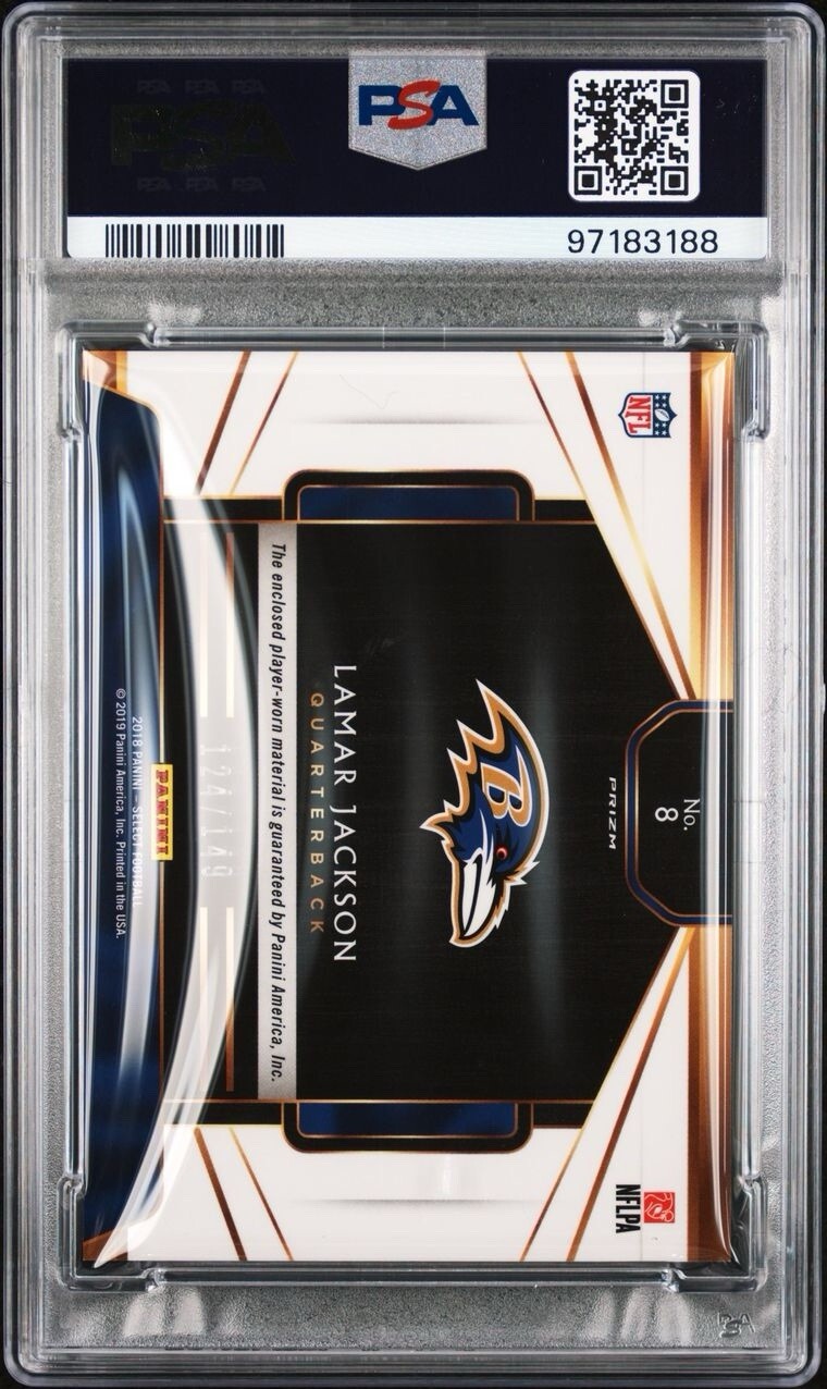 2018 Panini Select Lamar Jackson Swatch White /149 #8 RC Rookie Card PSA 9