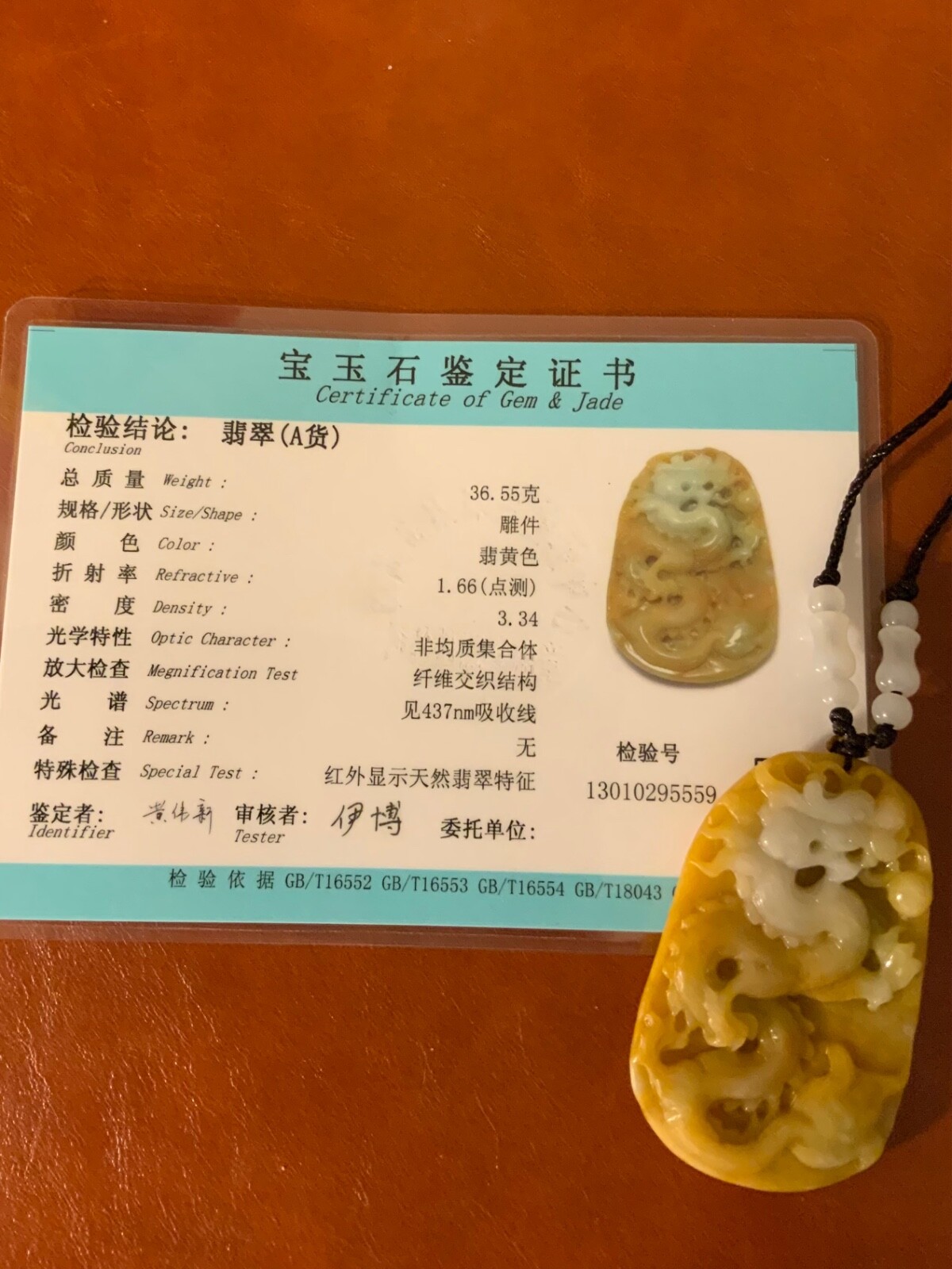 This is a beautiful genuine Burmese Jadeite Jade Dragon pendant necklace. This one of a kind pendant is masterfully carved with an adorable Dragon. It is strung on an adjustable 24” cord necklace. This Jadeite pendant comes with the Certificate that is shown in the photos. MEASUREMENTS - This pendant measures 2-3/8” tall and 1-1/2” wide at its widest point. The necklace is 24” long and it is adjustable by sliding the beads at the back. WEIGHT - The pendant weighs 36.55 grams - see photosPlease check out my other jewelry listings Your treasure will be carefully packaged for its journey home Thank you for looking