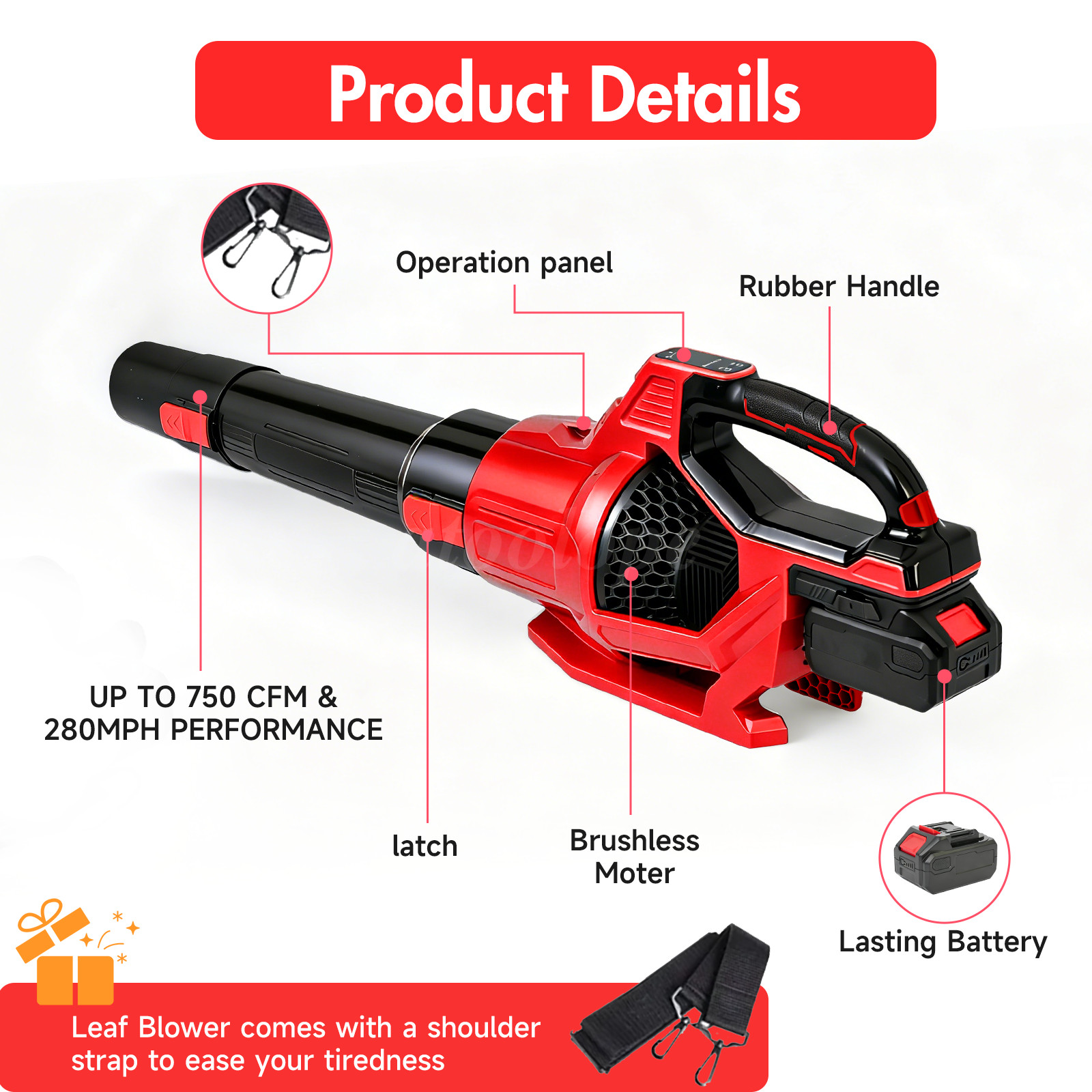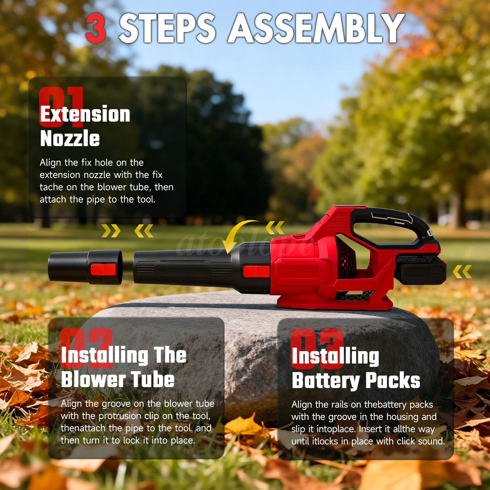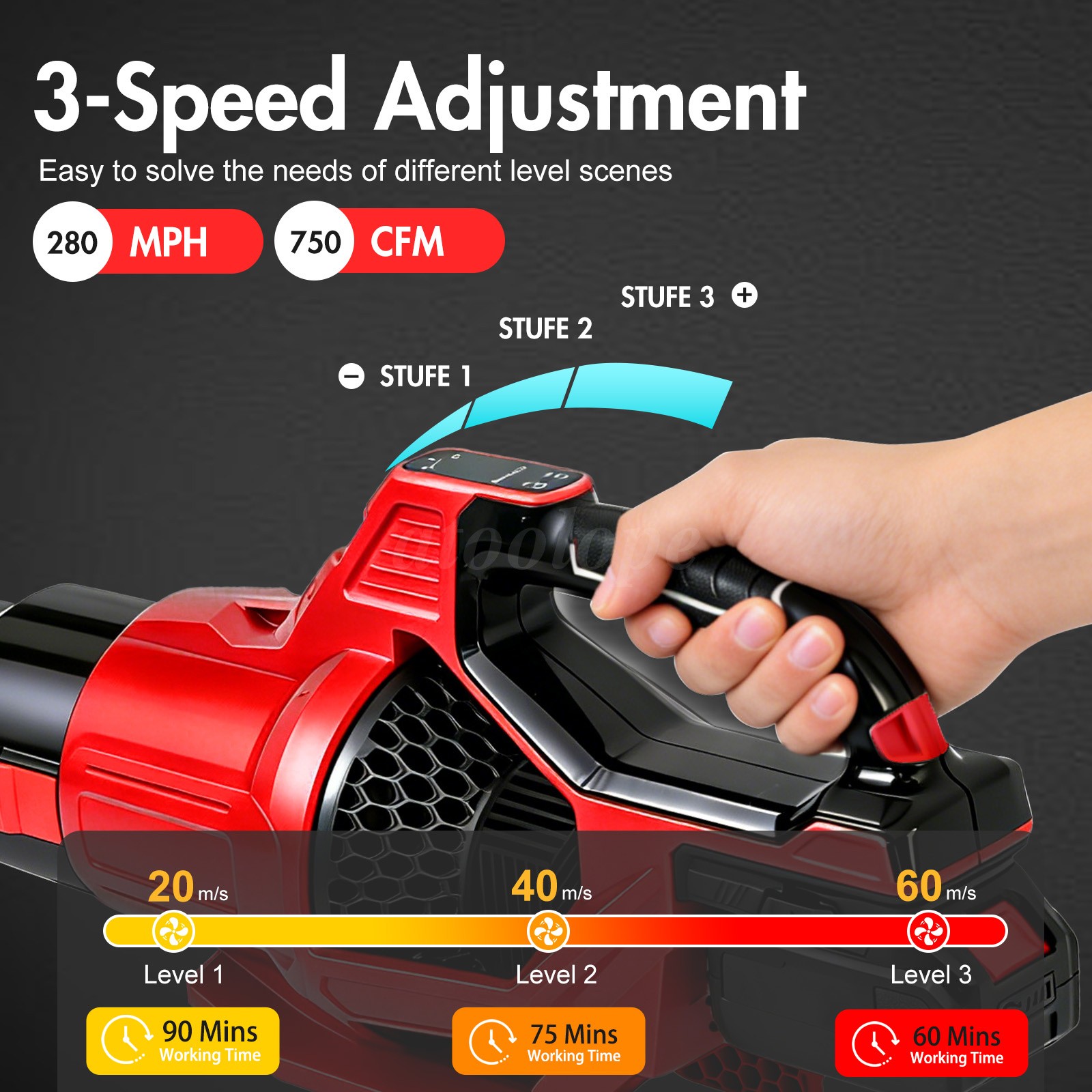 Cordless Leaf Blower 650CFM/280MPH & 3 Speed Levels Electric w/2 Batteries 6.0Ah