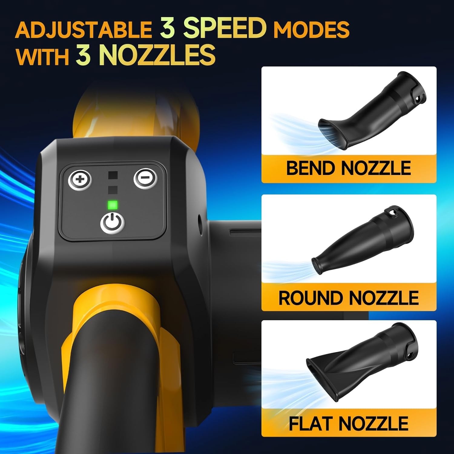 Battery Powered Leaf Blower - 20V Cordless with Fast Charger & 3 Speed Modes