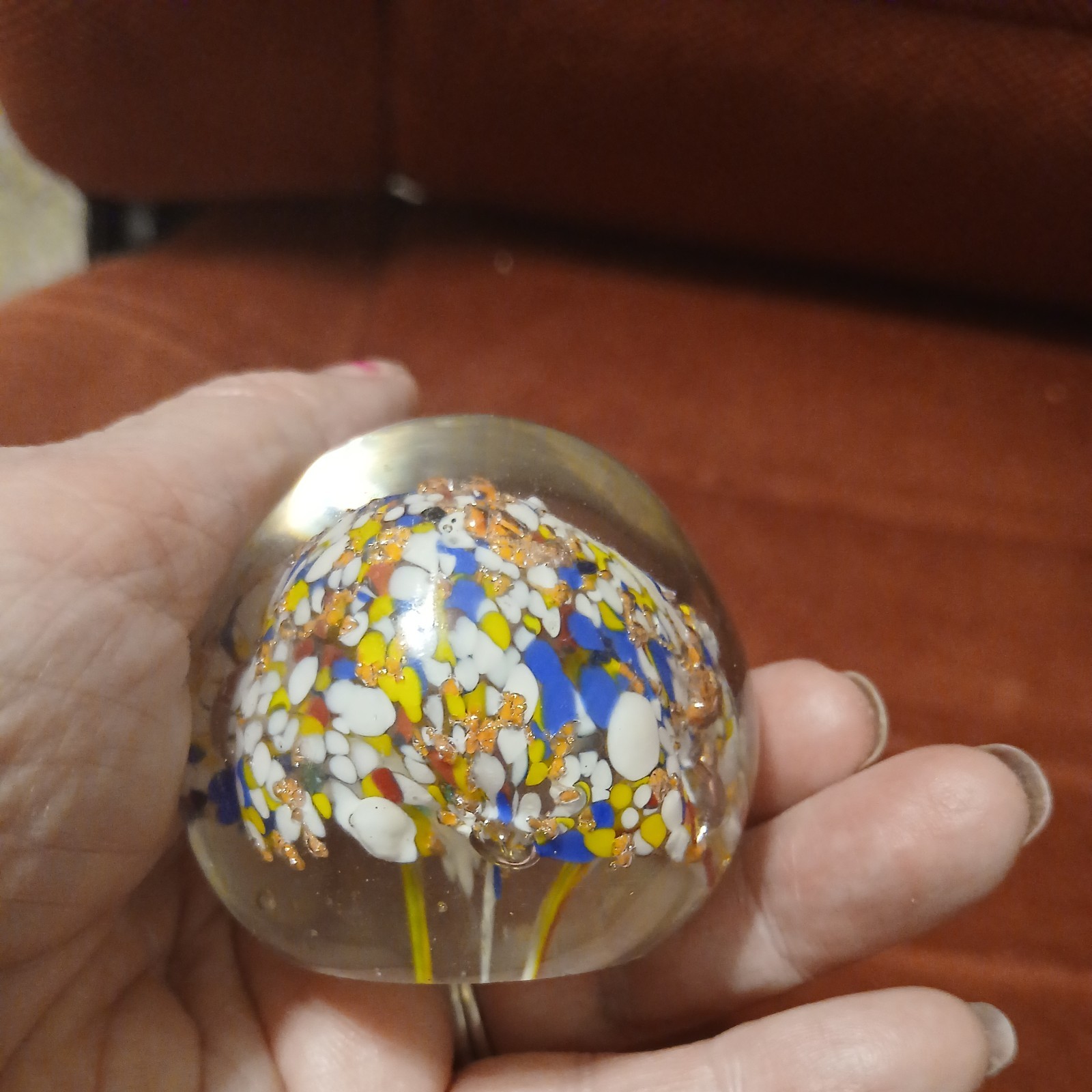 Controlled Bubble Multi Colored Art Glass sphere Paperweight