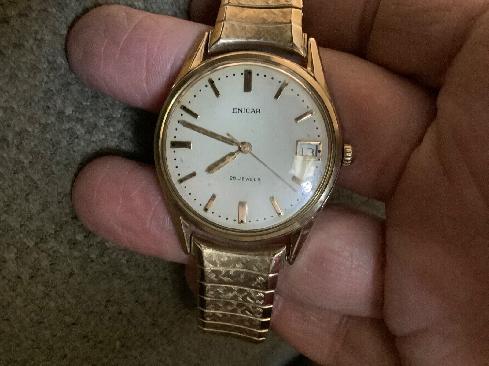 Enicar Ocean Pearl mens wind up watch gold content runs fine sharp watch 7 to 8”