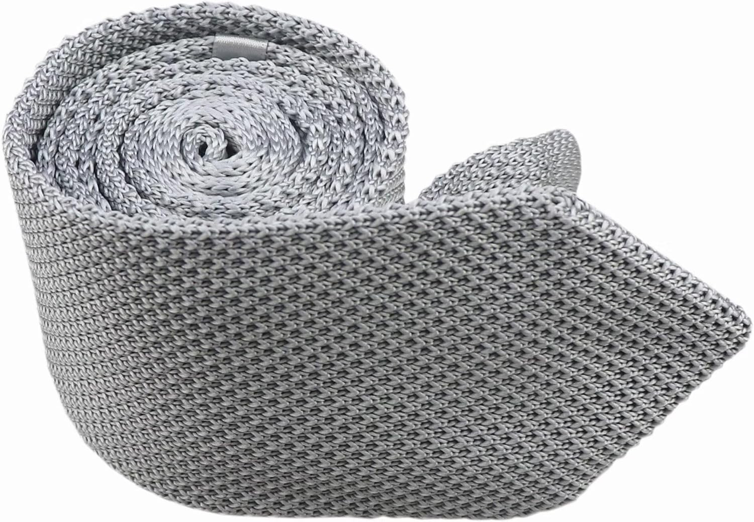 Pointed Knit Ties for Men Pure Color 2.76 Skinny Neck Tie One Size Light Grey