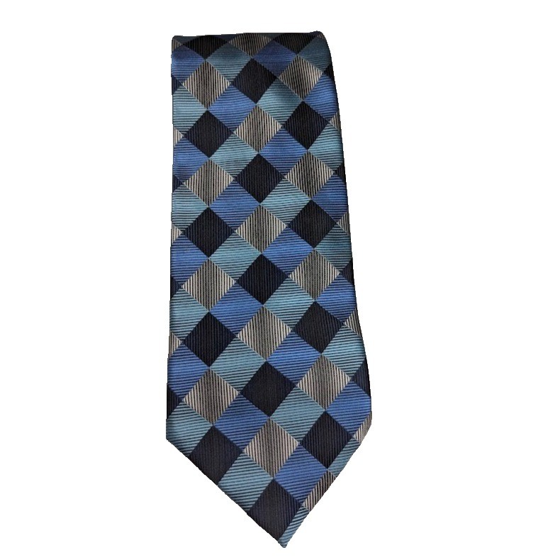 Stafford Essentials Men's Necktie Blue Silver Geometric PolyesterTie is in good condition.100% polyesterOver 60" long, 3" wide******All items are stored in a smoke free facility.We do our best to note any flaws in the listing, please contact us if you have any issues.We are typically unable to pull items for additionalmeasurements due to volume.We truly appreciate your business and have an amazing day!