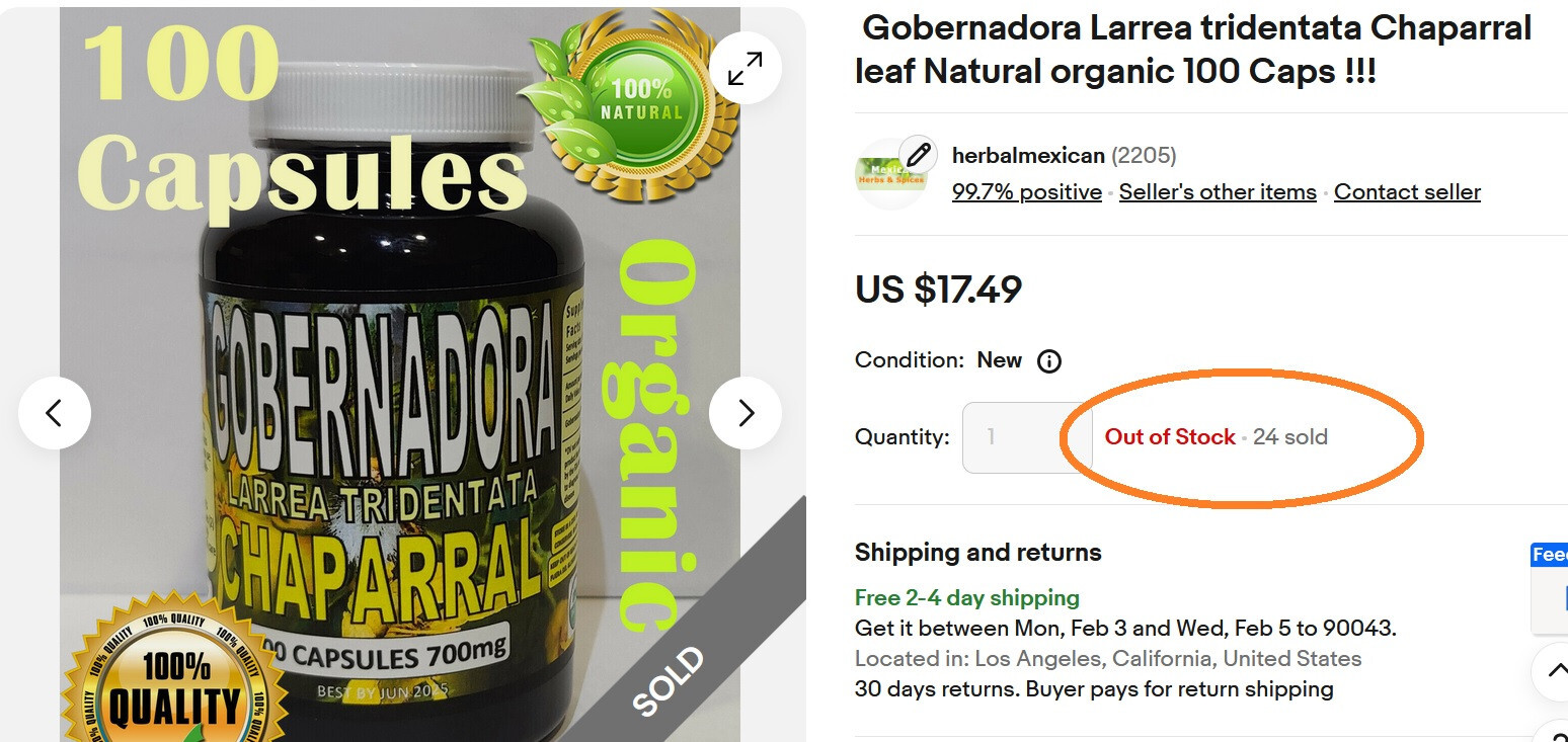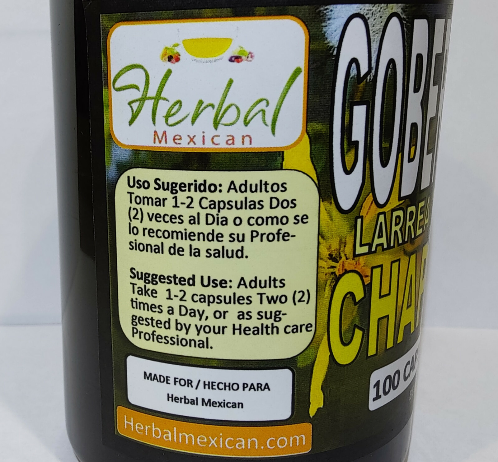 | Active Ingredients | Gobernadora, Larrea tridentata, Chaparral, Gobernadora Tea, Lareea tridentata herbs, organic chaparral, gobernadora capsulas, chaparral capsules |