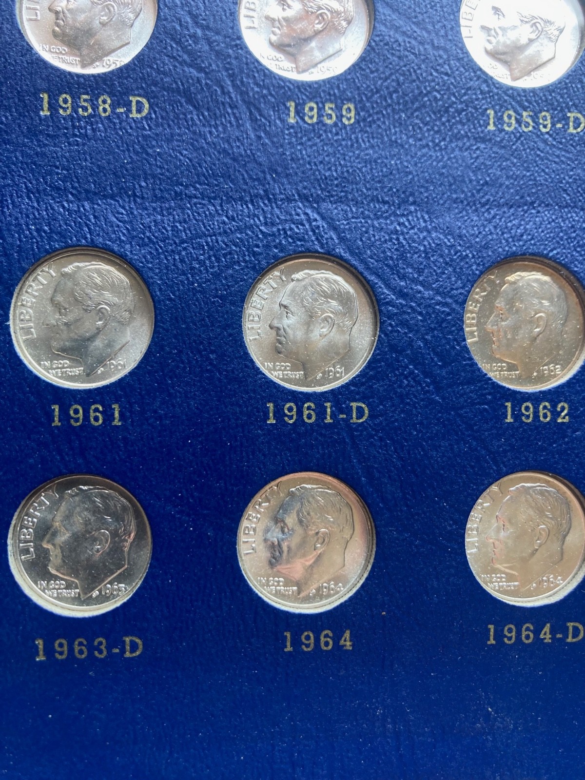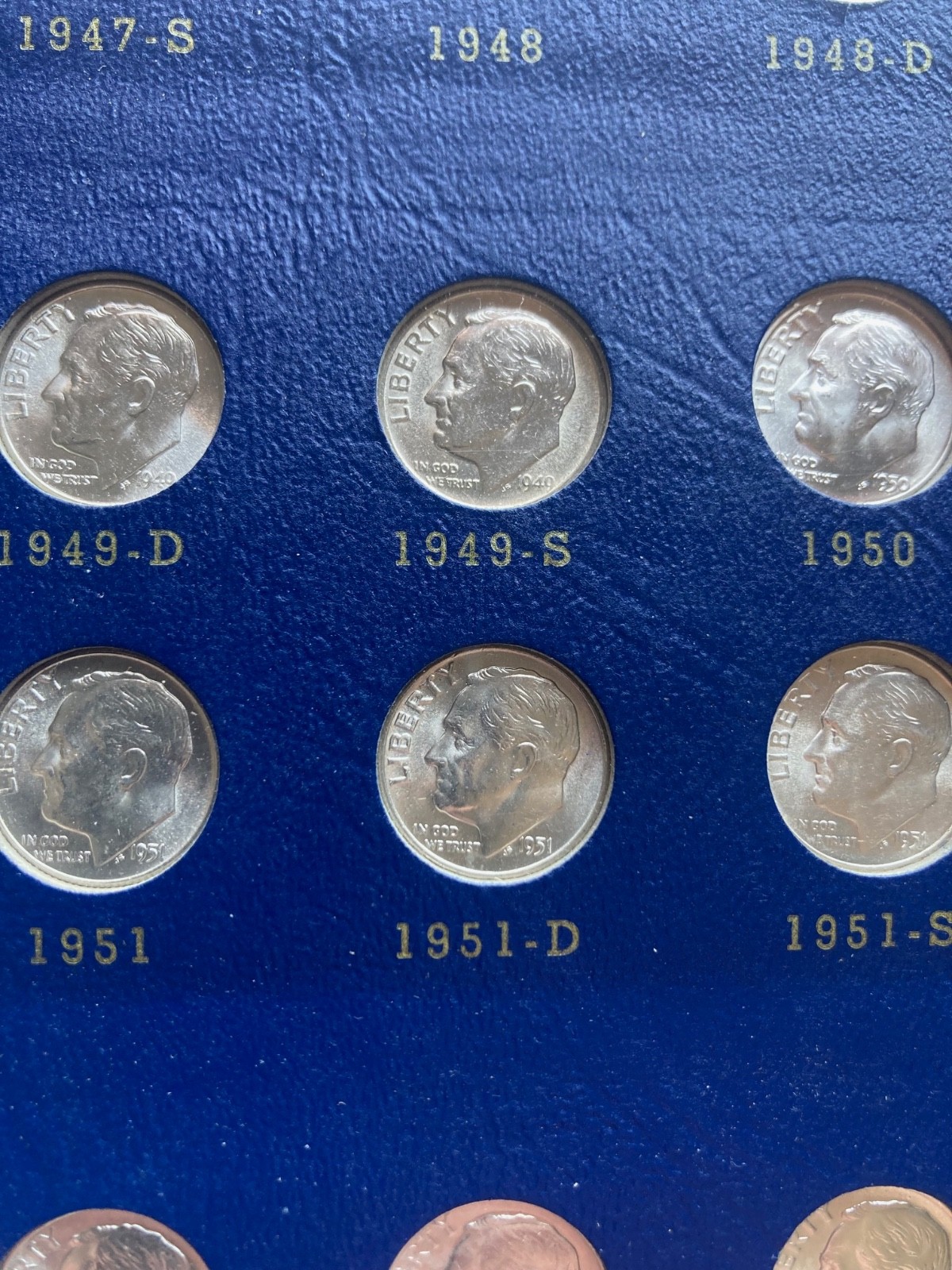 Roosevelt Dime set in classic folder, 1946-1964 complete 48 coins in superior BU Specs