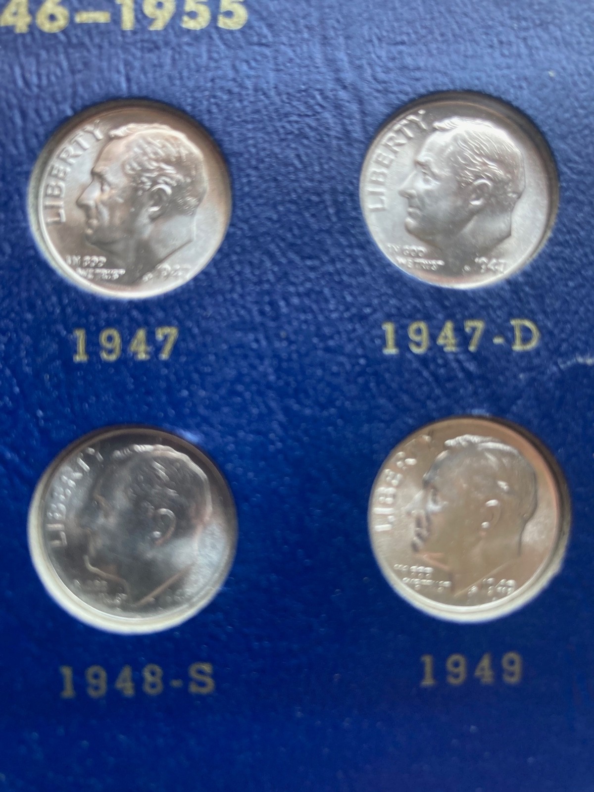 You are purchasing a nice "Brilliant Uncirculated" complete (silver) set of Roosevelt Dimes in a classic Whitman folder. 48 coins.Complete silver series of coins 1946-1964. 1946-PDS, 1947-PDS, 1948-PDS, 1949-PDS, 1950-PDS, 1951-PDS, 1952-PDS, 1953-PDS, 1954-PDS, 1955-PDS, 1956-PD, 1957-PD, 1958-PD, 1959-PD, 1960-PD, 1961-PD, 1962-PD, 1963-PD, 1964-PD.I have twenty of these sets to sell and the photos show the first set being sold. All sets are of equal quality.All are premium quality Brilliant Uncirculated.
