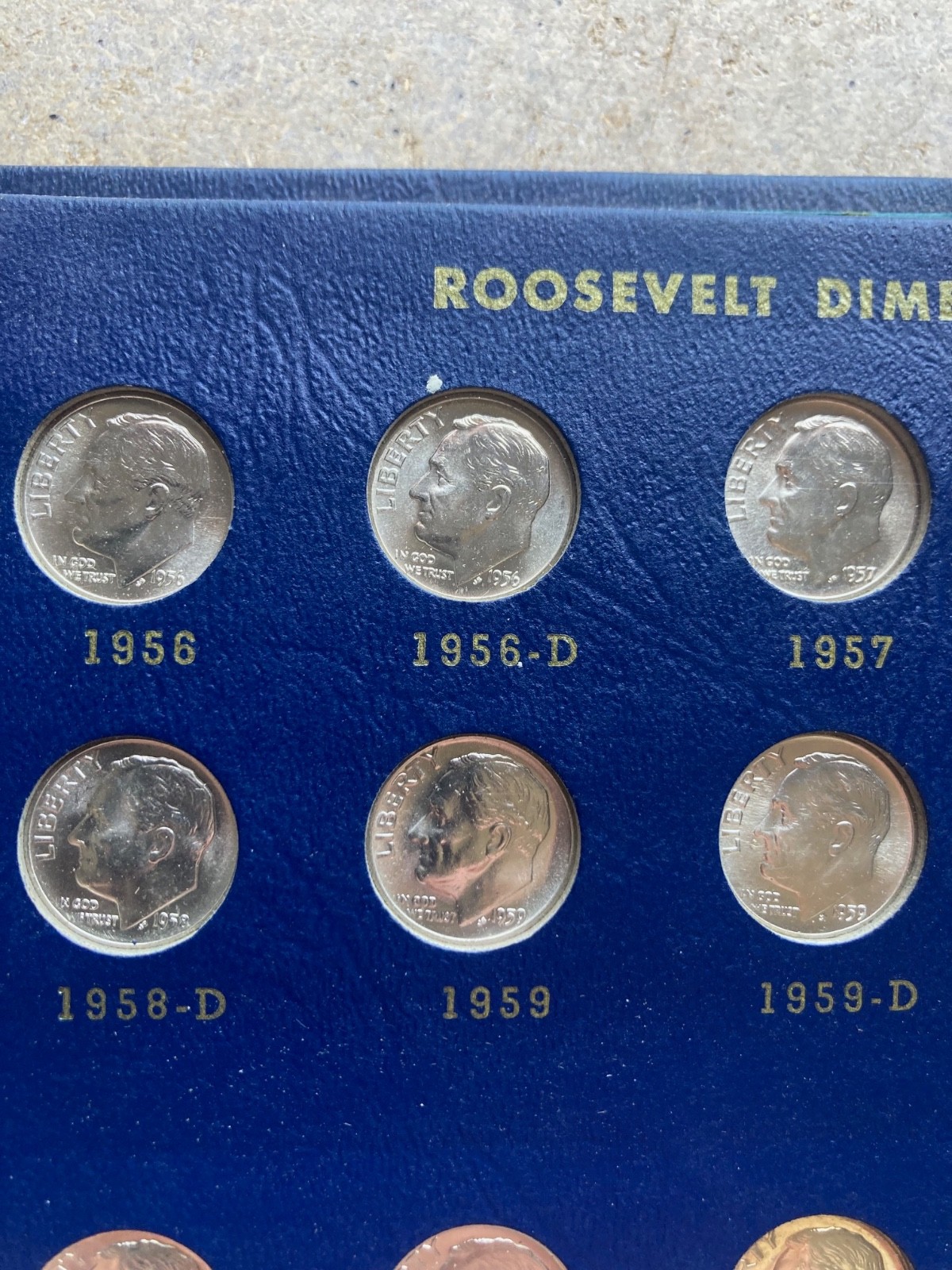 Roosevelt Dime set in classic folder, 1946-1964 complete 48 coins in superior BU