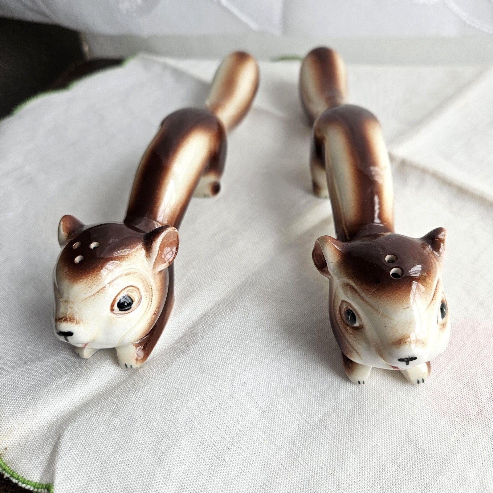 Vintage Japan Squirrel Salt and Pepper Shakers Ceramic Long Set 2. Measure 8" long.