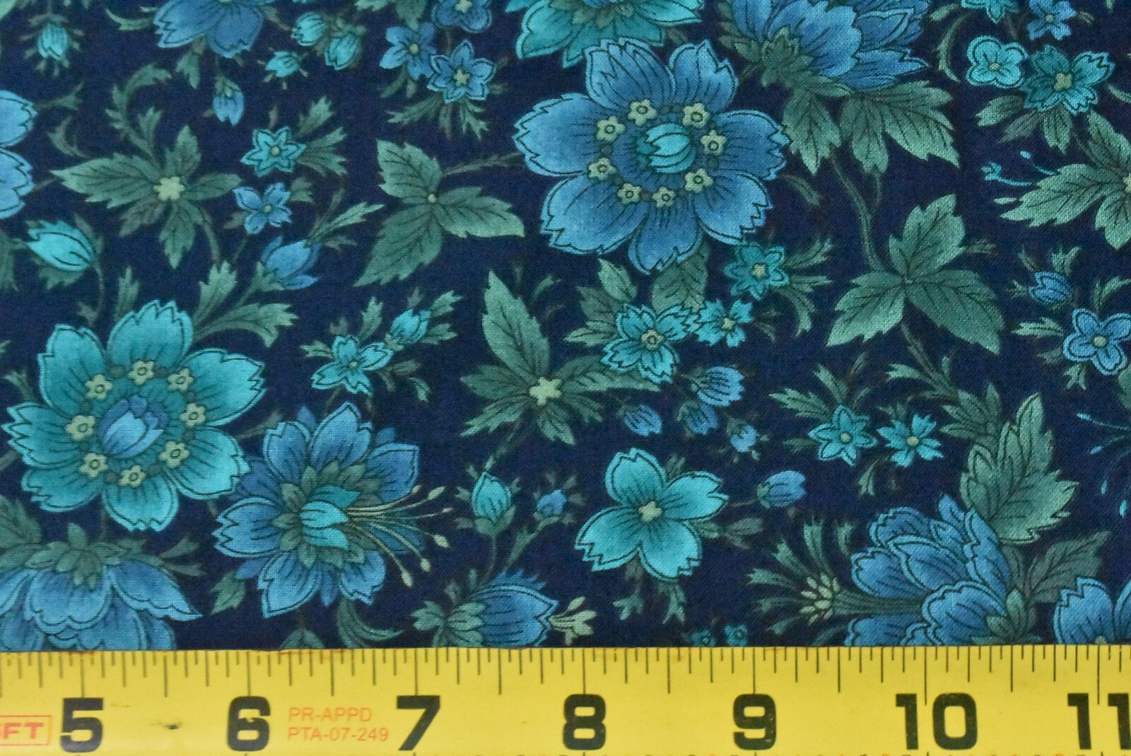 By 1/2 Yd, Blue & Green Floral on Navy Quilt Cotton, Hoffman, "Wood Blocks",V501